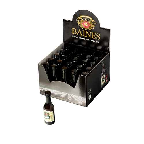 Pacharán 25 Miniaturas Baines se trata de un pacharán que busca sacar el máximo partido al fruto. Una maceración reposada y tradicional de cuatro meses marca sin duda la calidad del producto, que ha conseguido posicionar este licor en los puestos más altos del mercado. Intenso y brillante color rojo rubí, con una nariz fresca, levemente anisada y marcadamente frutal. En boca, la entrada es untuosa y aterciopelada, larga e intensa, dulce y frutal, dejando un retrogusto persistente que invita a disfrutar sorbo tras sorbo. Perfecto para compartir o regalar en cualquier ocasión especial.